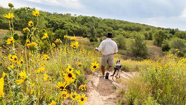 - Flint Hills Nature Trail – A 117-mile rail-trail and the stateโs second linear state park. It follows an original Missouri Pacific Railroad line and is open to non-motorized traffic like horseback riders, bikers, and hikers. The trail links five counties and intersects with the Prairie Spirit Trail State Park in Ottawa.